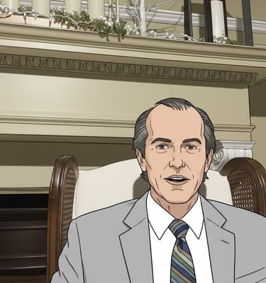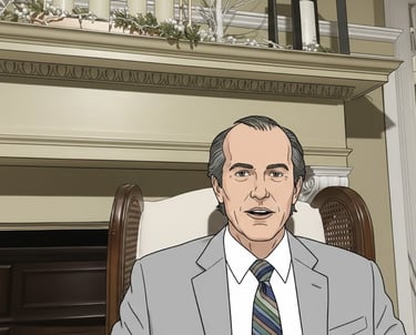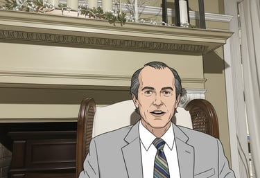 Left leaning independent Candidate running for Senate Seat in Illinois. Talks with Midwest accent. He is in his early 60's has black greyish hair, parted on the side and starting to bald in the top top- Thinning.- Dresses in White Collar Shirt with light grey blazer and matching suit pants and multi colored next tie. Retired College professor for humanities and was head of the everybody gets trophy club.